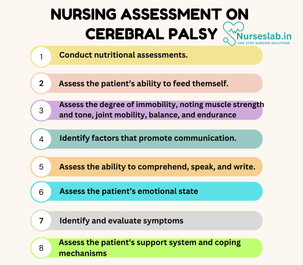 A thorough nursing assessment is crucial in identifying the unique needs of each patient with cerebral palsy. This involves: