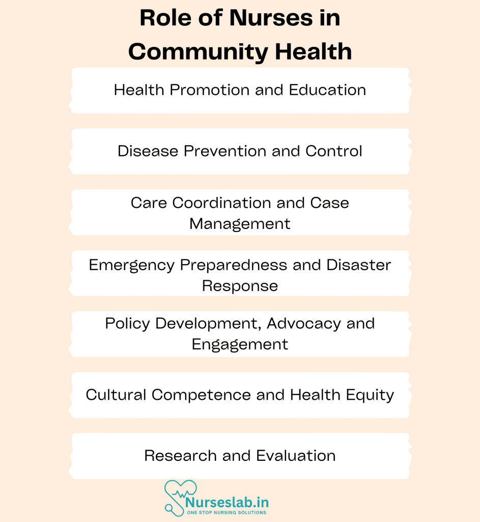 - Research and Evaluation: Nurses are involved in research and evaluation activities to generate evidence-based practices and interventions that can improve community health outcomes.