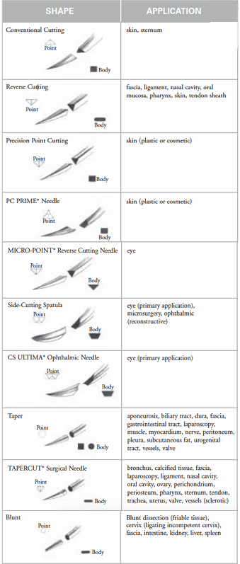 - The needle body or shaft is the region grasped by the needle holder. Needle bodies can be round, cutting, or reverse cutting:
