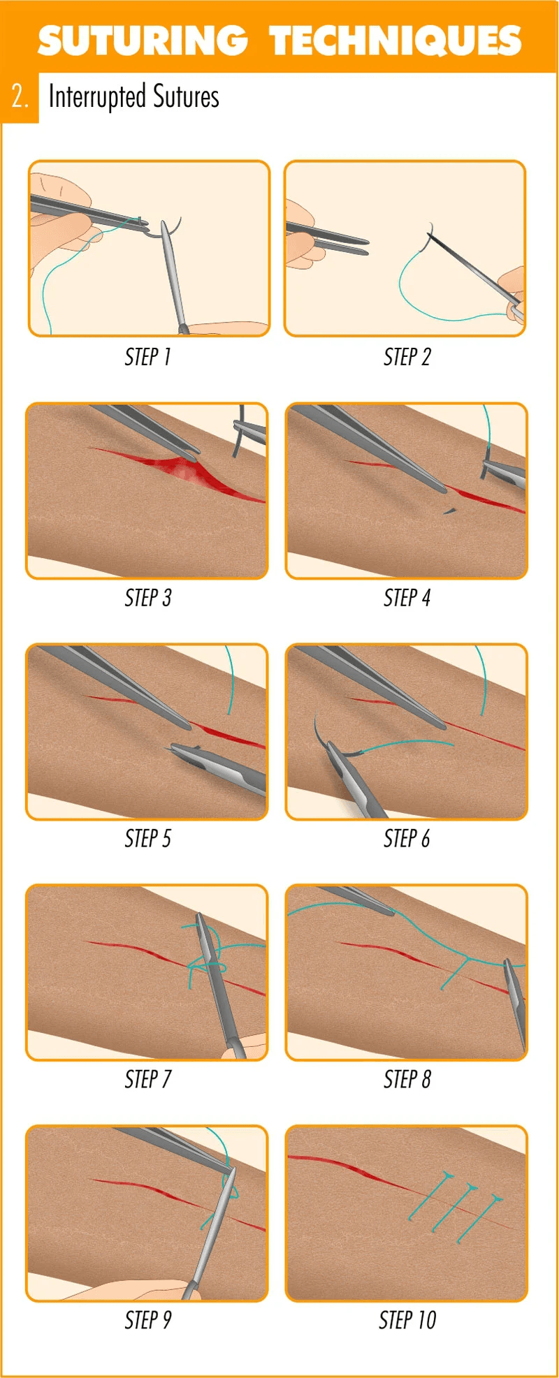 - Simple Interrupted Suture: This is one of the most common suturing techniques. It involves placing individual stitches that can be tied off separately. This technique is useful for closing wounds as it allows for adjustment of tension.