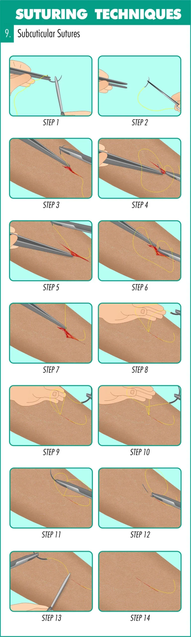 - Subcuticular Suture: Often used for closing skin incisions in a cosmetic way, this technique is placed just beneath the skin to minimize scarring.